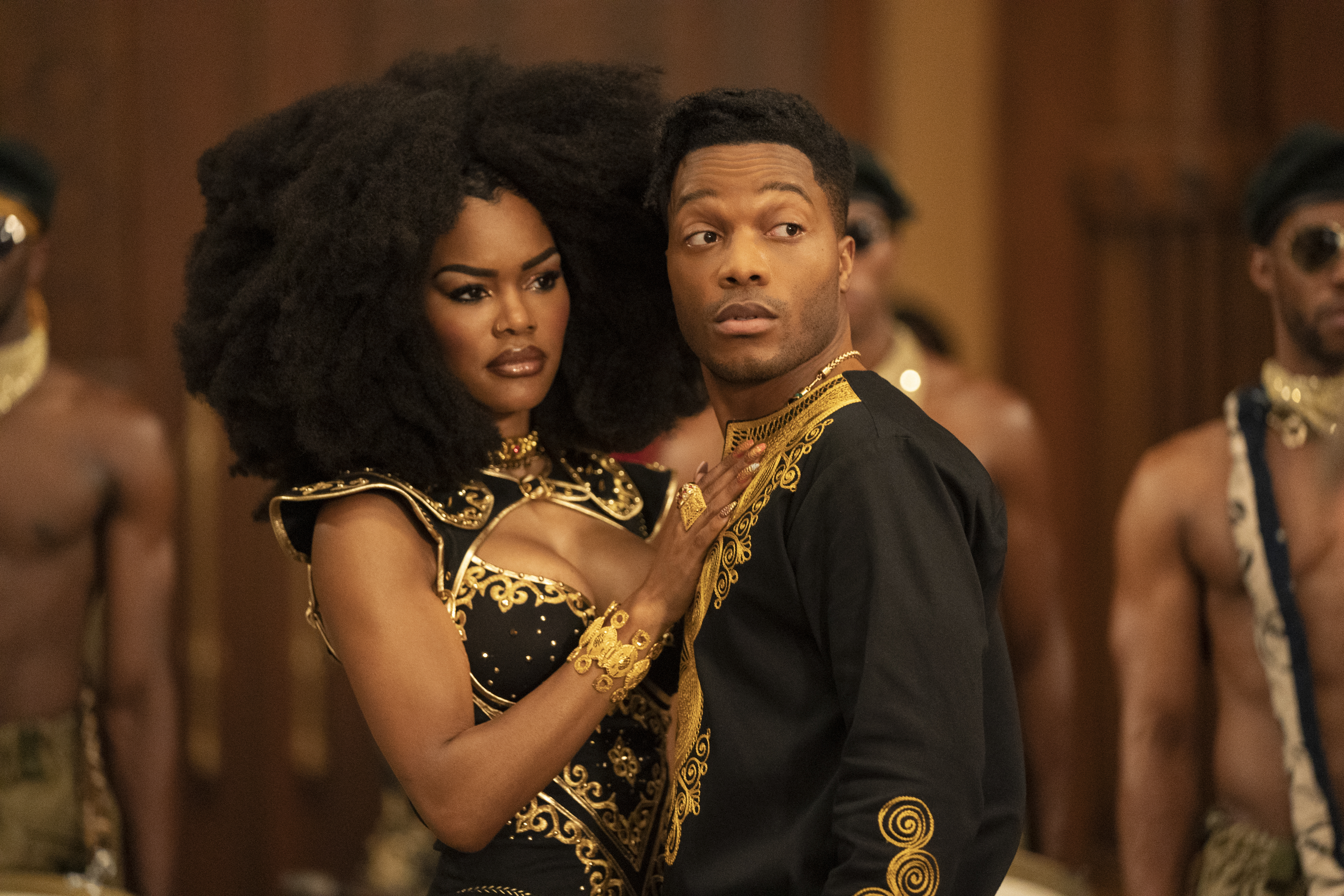 Threatened with war against Zamunda if his eldest daughter Meeka (KiKi Layne) doesn’t marry General Izzi’s, portrayed by Wesley Snipes, son Idi (Rotimi) and make amends for not marrying the general’s sister Imani (Vanessa Bell Calloway), Akeem brings Lavelle back to Zamunda with the intention that he would obtain peace and one day be seated as Akeem’s male heir – after marrying Izzi’s daughter Bopoto (Teyana Taylor).